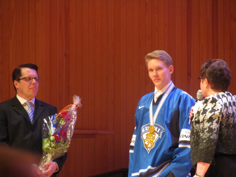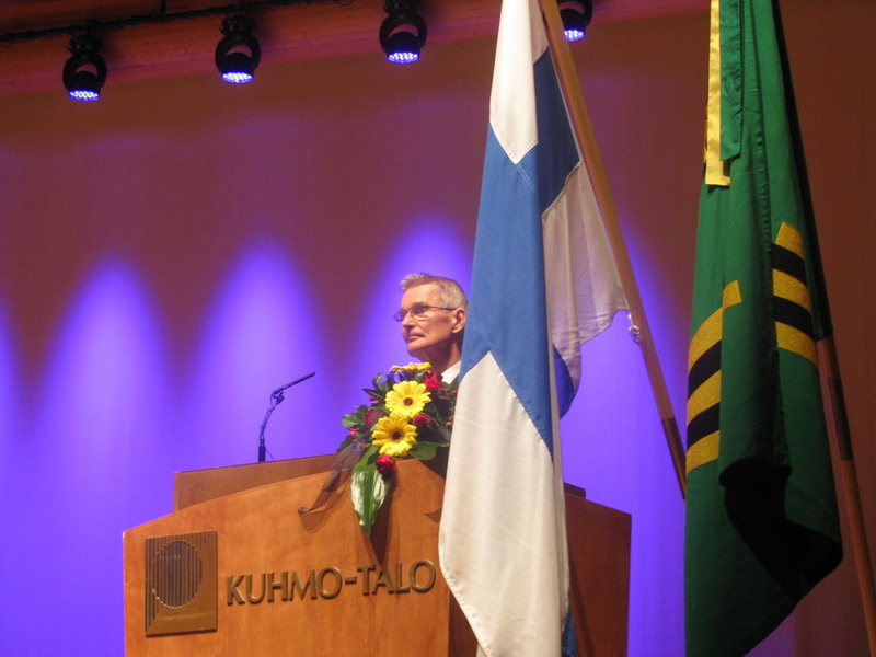 Puheenjohtaja Eero Väisänen 80v. juhlapuhetta pitämässä 27.4.2014 |  Maa- ja metsätalousministeri Jari Koskinen juhlassa |  Jääkiekon nuorten maailman mestari Saku Kinnusen muistaminen - kuvassa myös Kuhmon kaupunginvaltuuston pj. Anneli Kinnunen ja kaupunginhallituksen jäsen Antti Komulainen |
